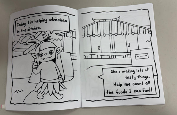 Follow Kenji the Kijimuna—a mythological creature native to Okinawa—as he explores the kitchen while his obāchan (grandmother) is busy cooking. Help Kenji count all the delicious foods he can find!